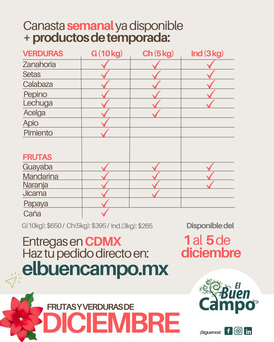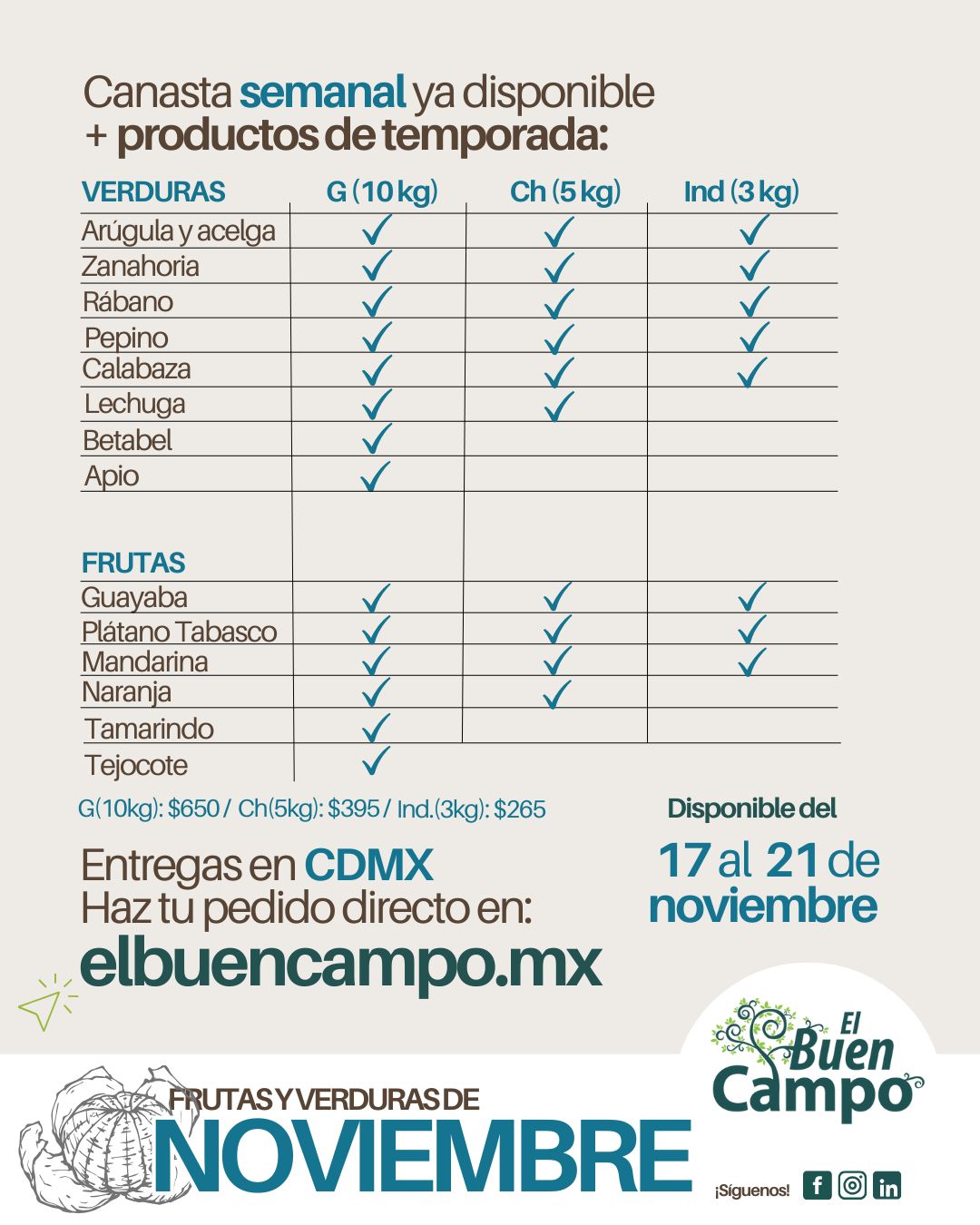 Tu canasta de productores Toma en cuenta... La canasta siempre es variada. El concepto de alimentación orgánica también promueve el comer de todo y lo que haya en temporada de los productores locales....